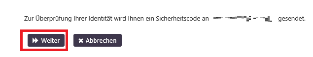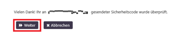 7. Stimmt der eingegeben Sicherheitscode mit dem aus der E-Mail überein klicken Sie auf „Weiter“