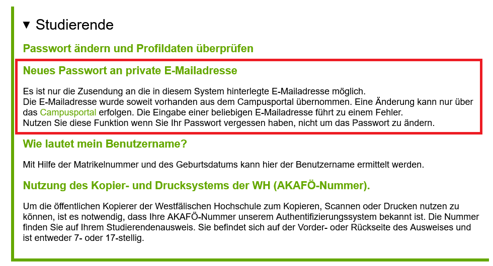 Die folgenden Anleitungen zeigen Ihnen, wie Sie als eingeschriebene Studierende Ihre Zugangsdaten abrufen können sowie ein vergessenes Passwort neu vergeben können.