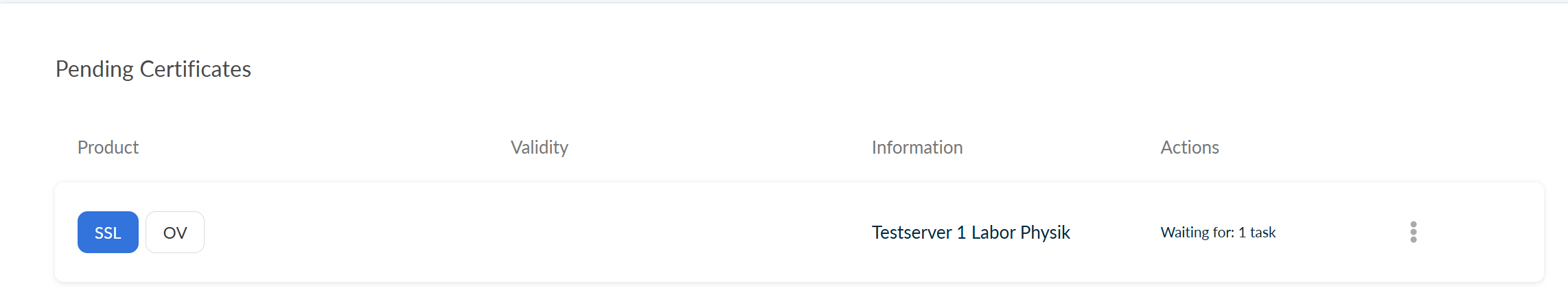 - Man gelangt wieder auf die Seite „My dashboard“. Das beantragte Zertifikat befindet sich im „Waiting“-Status und wird manuell von den Zertifikats-Administratoren freigegeben.
