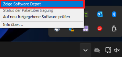Klicken Sie auf den kleinen Pfeil in der Taskleiste, um im Hintergrund laufende Programme angezeigt zu bekommen. Dort befindet sich das lila-weiße Symbol des Software Depots.